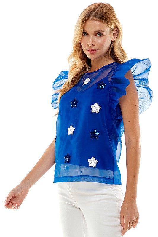 Organza Top With Sequined Stars