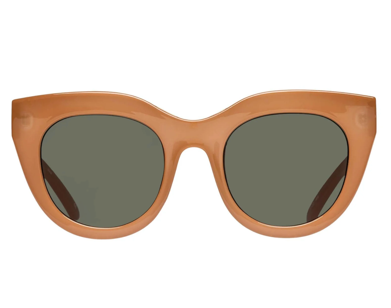 Inspired by the fashion-forward choices of Meghan Markle and Olivia Palermo, the iconic Air Heart sunglasses from Le Specs boast an oversized, dramatic silhouette with a touch of cat-eye flair. The thick caramel frame, luxurious metal top bar inlay, and premium zero base khaki grad flat lenses make these sunglasses a must-have for any stylish wardrobe.