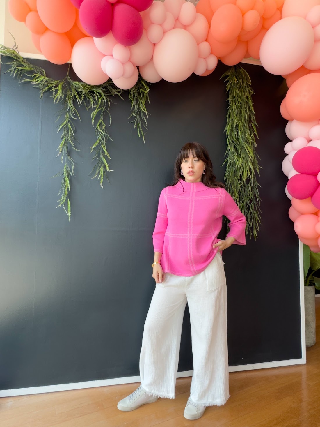 Stand out from the crowd in the Barb Sweater—a striking checker knit mock neck bell sleeve sweater. With the perfect balance of comfort and style, you'll be the envy of any gathering. Its quality construction featuring a ribbed knit design ensures a snug fit with stretchable fabric for easy movement. Wear it day or night for a classic look that won't go out of style.